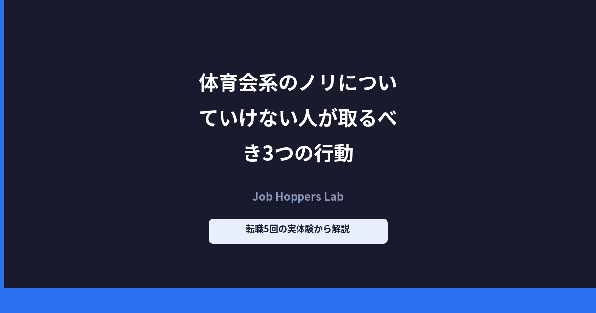 この記事では、体育会系のノリについていけないあなたが取るべき3つの行動を、僕の実体験から解説する。